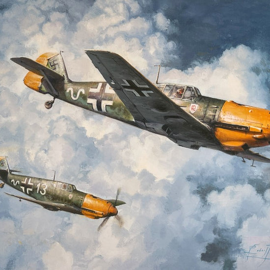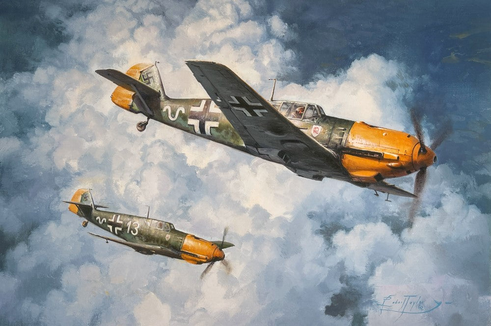 Signatures: Each print in every edition is individually hand numbered and signed by the artist Robert Taylor along with one of the most legendary Luftwaffe Aces of WWII: