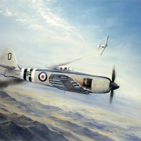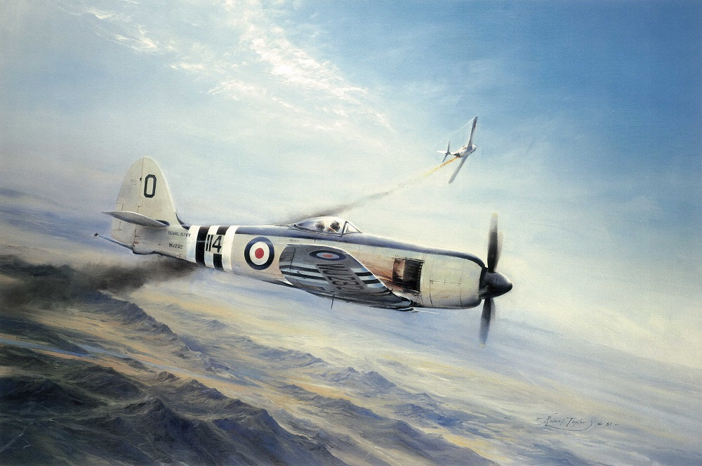 On August 9, 1952, Hawker Sea Furies of 802 Naval Squadron, operating from HMS Ocean, engaged MiG-15s over Pyongyang during the Korean War. Led by Commander Peter "Hoagy" Carmichael, a flight of four Royal Navy Sea Furies encountered eight MiG-15s. In the ensuing intense dogfight, the Sea Furies managed to shoot down one MiG and inflict damage on at least two others. This encounter is believed to mark the first recorded victory of a piston engined aircraft over a jet fighter during the Korean War.